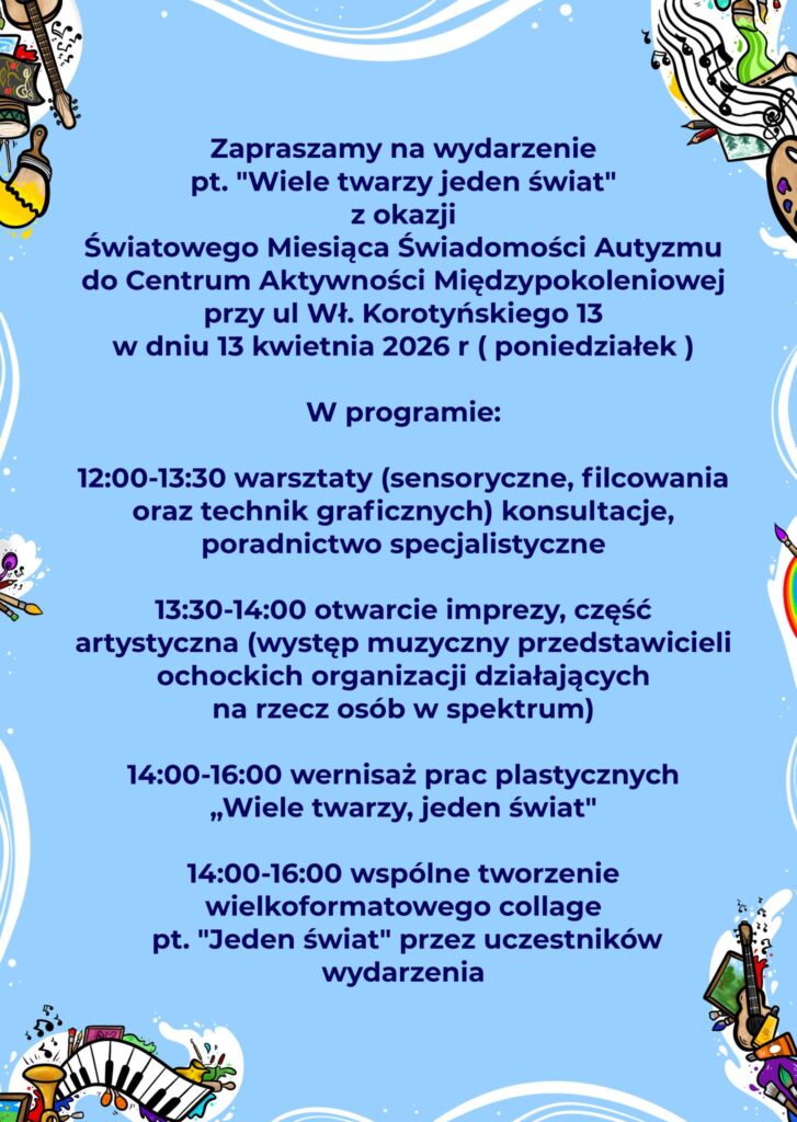 W ramach obchodów Miesiąca Świadomości Autyzmu, Jakuba ŚDS organizuje szereg ciekawych imprez, na które serdecznie zapraszamy.